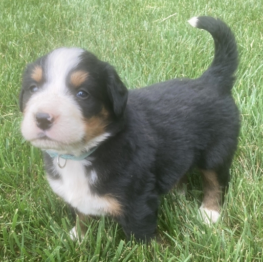 Unser junger Rüde Bailey ist ein energiegeladener und ausgesprochen freundlicher Berner Sennenhund Welpe, der mit seinem fröhlichen Temperament und seinem starken Bezug zu Menschen besticht. In unserer Zuchtfamilie in Bayern aufgewachsen, ist er hervorragend sozialisiert, stubenrein und zeigt eine ansteckende Lebensfreude. Bailey ist neugierig, lernt schnell und genießt sowohl ausgelassenes Spiel als auch entspannte Kuscheleinheiten. Seine Grundausbildung umfasst bereits die Reaktion auf seinen Namen, erste Basiskommandos und eine positive Gewöhnung an Leine und Alltagssituationen.